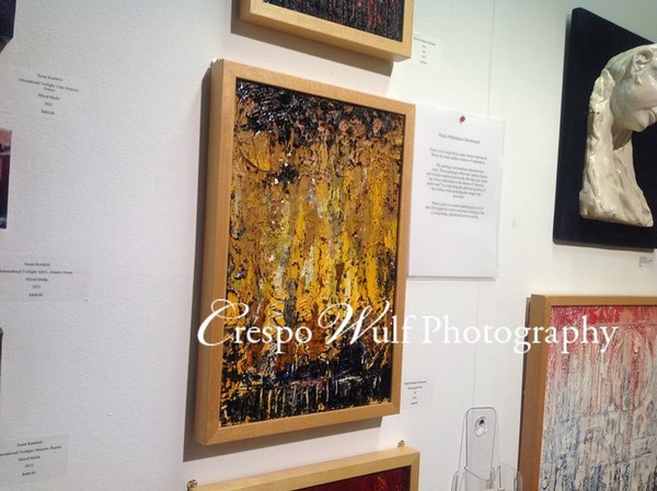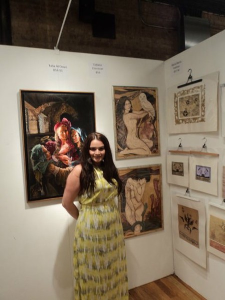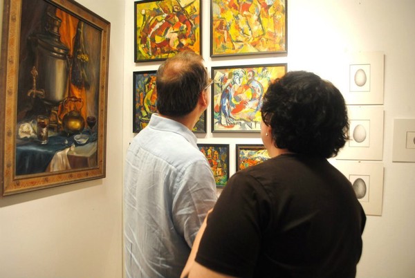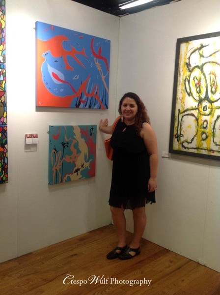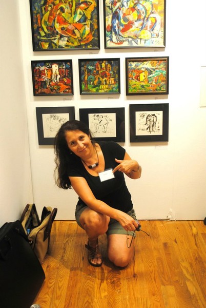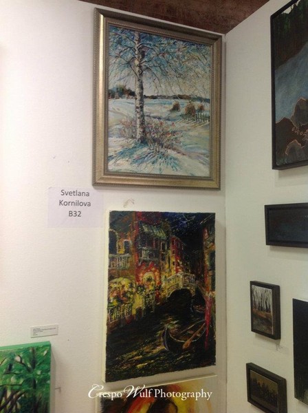 The emigrant Diana helped me in organizing the shipment and delivery of paintings to the exhibition. We met her on social networks and had never seen each other. It is very nice to have such good friends.