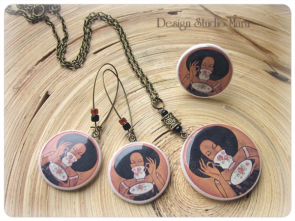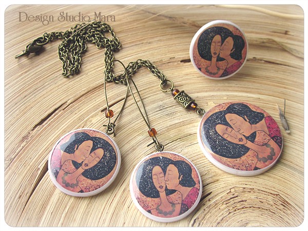 Мы кропотливо выбирали фрагменты из моих работ, подбирали бусины, выбирали цвет метала, цвет пластика.